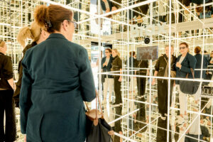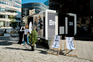 Our Expandable was fully branded in BRAX style and effortlessly transformed into a mobile pop up store. Visitors were welcomed into an atmospheric setting featuring a charming licorice cart that created an approachable and hospitable experience, comfortable lounge furniture that formed a relaxing oasis in the middle of the city, and a striking mirror room. This mirror room was a photobooth with four mirrored walls that became the ultimate eye catcher, both on site and on social media.