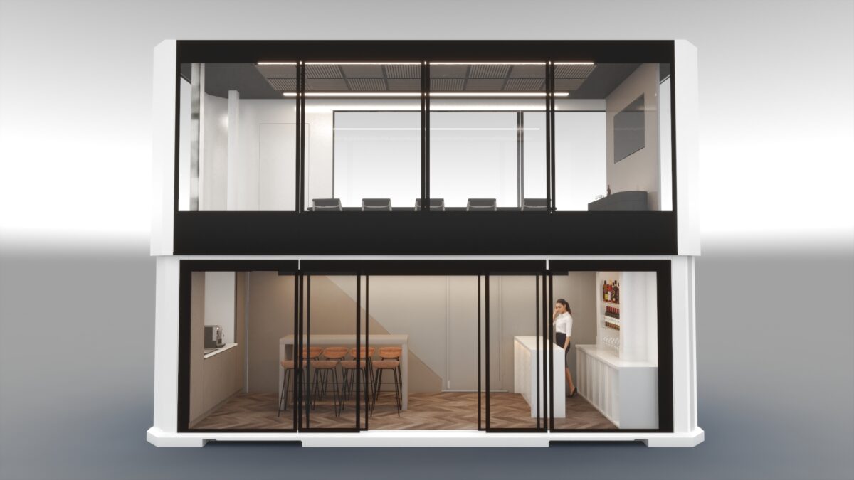 De Mobile Event Unit #00 is een unieke, uitschuifbare roadshow unit die volledig kan worden afgestemd op uw behoeften. Deze hoogwaardige mobiele ruimte klapt niet alleen uit in de breedte, maar juist in de hoogte, waardoor een 1e verdieping ontstaat en extra ruimte beschikbaar komt. Zo steekt u letterlijk boven andere beursstands uit en trekt u moeiteloos de aandacht van voorbijgangers en bezoekers.