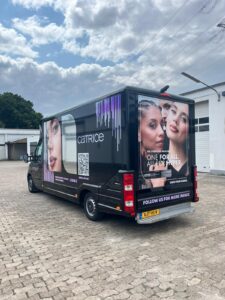 De basis van deze activatie lag in de inzet van een InfoWheels-unit van Eventrent. Dit mobiele promotievoertuig fungeerde als compacte pop-up experience en was volledig afgestemd op de campagne. Dankzij het flexibele karakter van de InfoWheels kon Catrice meerdere steden bezoeken en per stop dezelfde hoogwaardige merkbeleving neerzetten, zonder afhankelijk te zijn van vaste locaties.